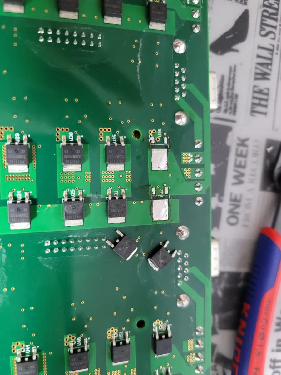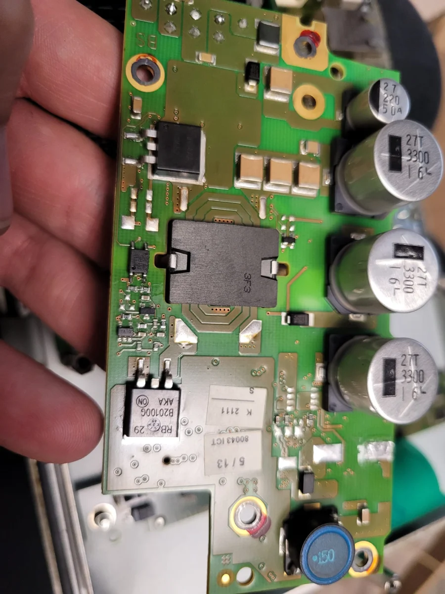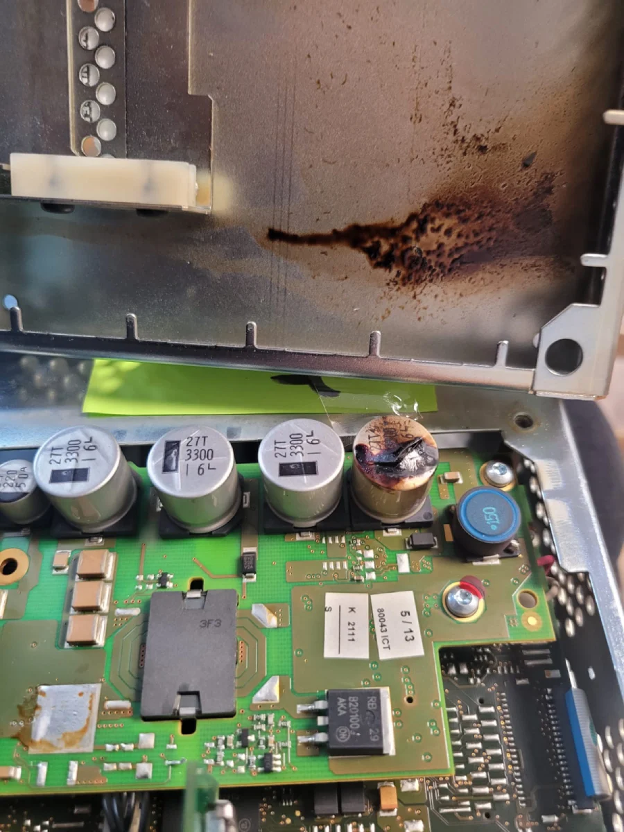 Uszkodzone tranzystory IGBT w module mocy. Alarm F0022. Inny serwis zakwalifikował jako „do złomowania”.