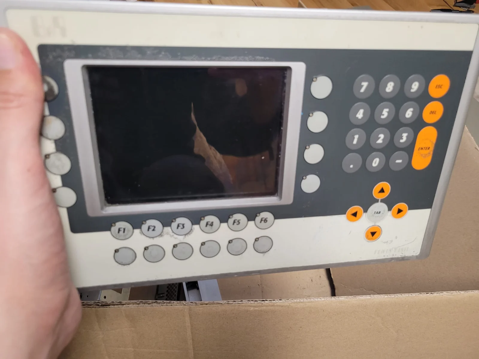 Uszkodzony zasilacz wewnętrzny. Awaria zgłoszona w niedzielę rano — urządzenie krytyczne dla linii pakowania.